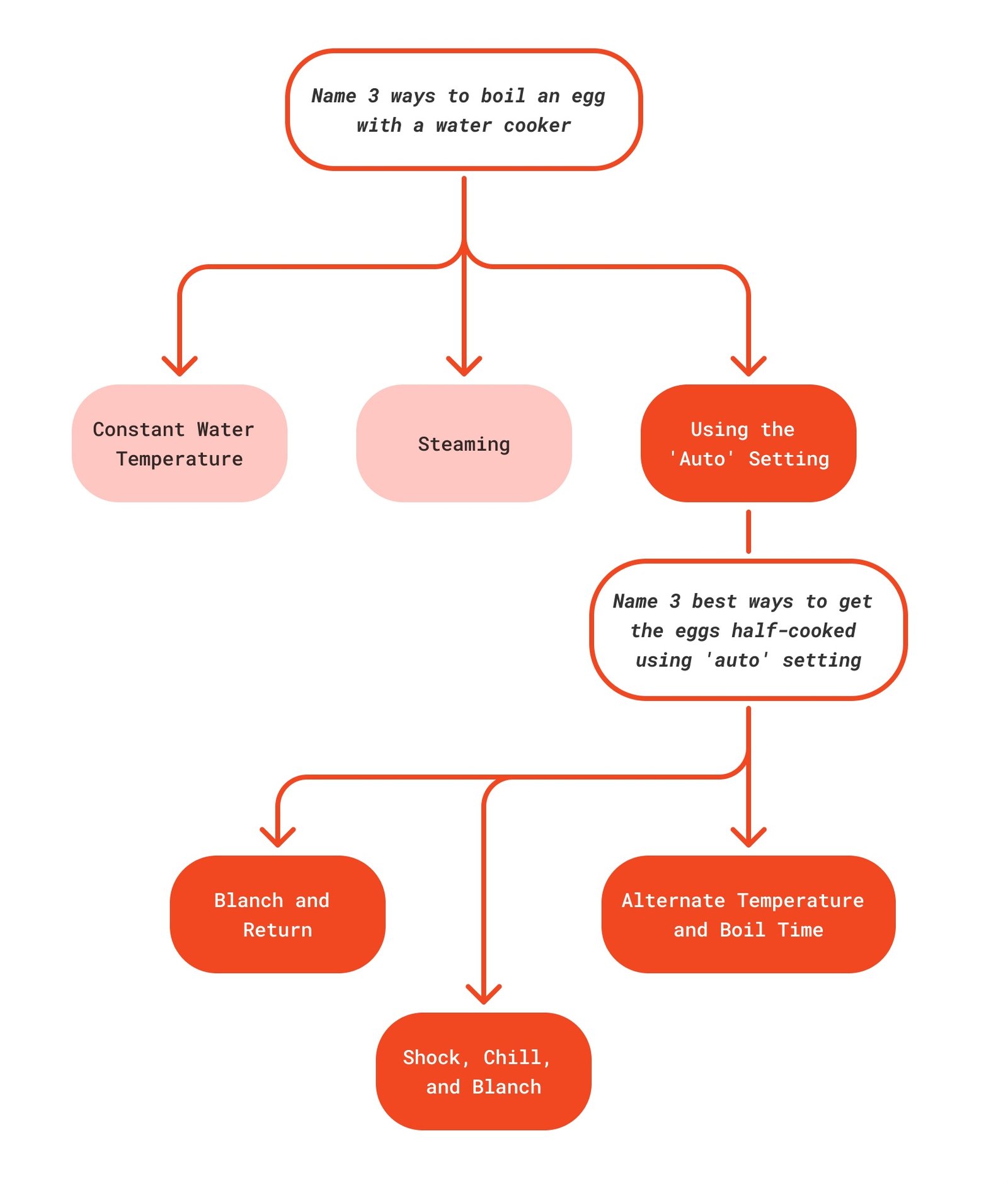 The project’s title, “Trees of Thoughts,” is inspired by the eponymous prompting technique used in working with LLMs, one that involves “branching out” from promising responses and “pruning” less fruitful ones to identify optimal paths for knowledge acquisition. To illustrate this, here is a diagram of a Tree of Thought to find the optimal technique to boil an egg with a water cooker: